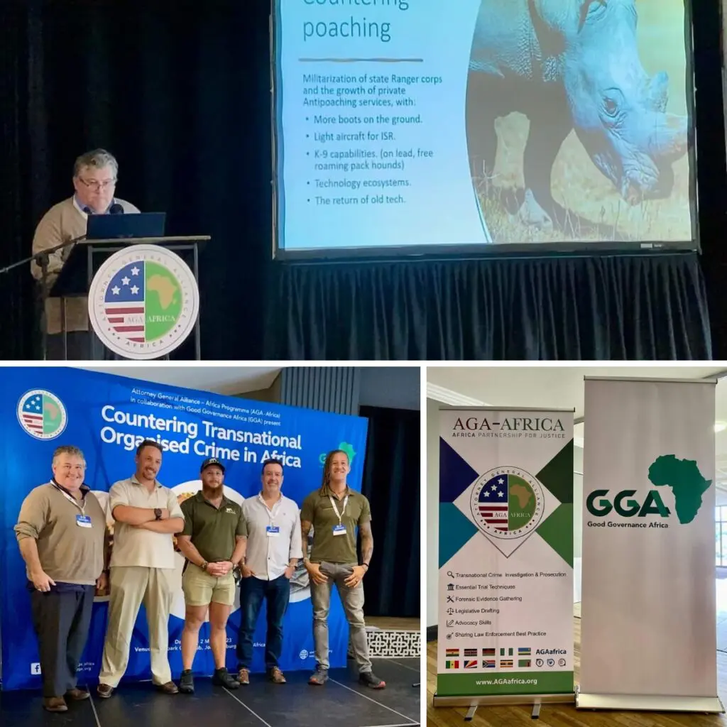 The department was recently represented at the Attorney-General Alliance and Good Governance Africa workshop on Transnational Organised Crime which included various wildlife crime topics and solutions. The College presented on some of the advances we have made with our canine capabilities, improved rhino population monitoring and dehorning programmes.