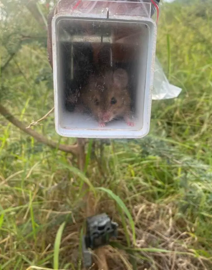Image 3: A mouse found trapped during one of our early morning inspections of the traps